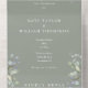 Le tout dans un faire-part de mariage avec une jolie aquarelle feuillage verdoyante et élégante typographie moderne sur un arrière - plan vert sage. L'invitation comprend une carte RSVP perforée qui contient le code QR de votre site Web mariage. Conçu par Thisisnotme©