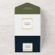 Une belle invitation tout-en-un raffinée et haut de gamme vinerie extérieure aquarelle avec une longue table rectangulaire en bois avec une nappe blanche croustillante sous une arche remplie de vignes. Une lanterne unique apparaît suspendue au milieu de l'arc et la table est flanquée de piliers de pierre et de peupliers et une pointe de vignobles au loin. Le texte blanc éditable apparaît sous le graphique posé sur un arrière - plan bleu foncé qui a des piliers de pierre majestueux et un peuplier de chaque côté formant un cadre élégant au libellé. Une déchirure de bande de réponse au fond en blanc et bleu a un seul groupe de raisins rouges dessus et noir et blanc modèles de texte modifiables pour votre libellé personnalisé. Ce design est inspiré des fermes viticoles du monde, que ce soit au Portugal, en Toscane, en Italie, au Cap, dans la Napa Valley ou dans toute autre région viticole. Célébrez votre union avec cette palette bleu, blanc, ivoire, beige, vert et or qui est idéale pour tout couple nuptial à la recherche d'une touche de classe et d'élégance à leur mariage. Cet invitation qui respecte le budget est idéal pour le couple qui veut se démarquer.