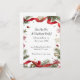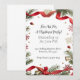 This traditional Christmas party invitation features an elegant red ribbon, greenery, and gold bells