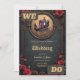 Transport gothique avec Ravens et Rose. Un chariot de style gothique tiré par deux corbeaux portant des chapeaux, dans un cadre circulaire doré et orné. Le chariot est décoré de fleurs et a une croix sur le dessus. L'arrière - plan est un vert foncé texturé, et le cadre est entouré de roses rouges et de fleurs dorées décoratives. L'ambiance générale est sombre, élégante et légèrement fantaisiste.