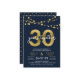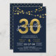 Invitation élégante pour le 30e anniversaire avec des guirlandes lumineuses et "30" en or faux avec "ans ensemble" en blanc sur fond bleu foncé. La carte comprend un verso avec un motif assorti. Découvrez les articles assortis comme les autocollants et les timbres ici https://www.zazzle.com/collections/strings_of_lights_faux_gold_celebration_collection-119311942951401241?rf=238364477188679314