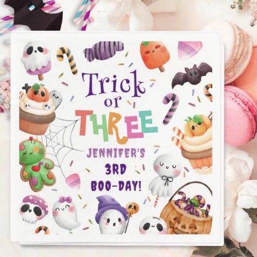 Préparez-vous à une fête effrayante avec notre invitation 'Trick or Three' pour un 3ème anniversaire violet et Halloween ! Parfaite pour célébrer la journée spéciale de votre petit en style festif Halloween. Achetez maintenant et faites de son 3ème anniversaire un événement terrifiant ! 🎃👻