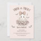Invitation tes petits gouls et gobelins de la façon la plus douce possible avec cette adorable invitation de fête d'Halloween rose avec une fille fantôme en tenue frileuse avec un arc! Parfait pour les soirées costumées pour enfants, les soirées Halloween ou les célébrations en salle de classe, cette invitation ajoute une touche de charme kawaii et des vibes éffrayantes pastel à vos projets d'Halloween. L'avant est orné d'un arrière - plan rose pâle, d'un fantôme girly en robe frileuse et d'un noeud de polka, et l'arrière d'un motif Leopard rose pastel. Entièrement personnalisable avec les détails de votre fête. Idéal pour les fêtes d'anniversaire, les nuits de ruse ou les réunions de sculpture de citrouilles. Que vous planifiez un boo-tiful bash, une soirée costumée, une pizza et un bonbon, cet invitation donne le ton pour un moment amusant, festif et légèrement éffrayant ! L'option de téléchargement numérique est disponible.