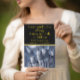 Invitation à une fête avec une représentation vibrante et colorée de figures de LOUP abstraites. Trois loups majestueux se tiennent fièrement sur un pic de montagne sous la pleine lune brillante, silhouettés contre le ciel nocturne, créant une impression d'unité ou de célébration. Avec un espace pour mettre tout votre texte d'invitation.