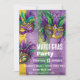 Bright et belle Mardi Gras masque invitation à la célébration de célébration avec arrière - plan violet, vert et or. Customisez pleinement cette invitation Mardi Gras avec tous les détails de votre fête. Laissez le bon temps rouler et passez un bon moment à célébrer Mardi Gras! Bon appétit !