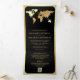 Invitation Trois Volets Black Gold World Map QR Code Photo Wedding
