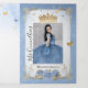 Concevez vos propres invitations triplées élégantes à l'aide d'un modèle do-it-yourself facile à modifier. Ajoutez vos propres photos personnelles et adaptez le texte à votre goût. L'aquarelle originale de Raphaela Wilson est agrémentée d'un design qui dépeint de délicats roses bleu clair ornés de jolis accents d'or faux métallique, d'une couronne royale princesse tiara/reine, d'une bordure en robe de filigree ornée, et de confettis de papillon scintillants, sur fond de papier parchemin blanc taché. Utilisez votre créativité pour insuffler à cette esthétique de conte de fées cool votre touche unique en modifiant le script de calligraphie et les polices modernes pour mieux convenir à votre fantaisie. Le format conventionnel d'invitation mexicaine simplifie le processus de traduction du contenu anglais en espagnol, si vous le préférez. Ces élégantes invitations triplées quinceañera vous offrent un grand espace, vous permettant d'incorporer trois photos (images glam Mis Quince Años) ou encore plus avec quelques réglages. En ajustant le libellé, ces invitations modifiables peuvent s'adapter en toute transparence à un éventail d'occasions, y compris des mariages bleu poussiéreux raffinés, un conte de fées Charro Princess Sweet 16 célébration, une douche royale enchanteresse, et diverses autres parties. Catégorie : invitations à la quinceanera d'aquarelle florale avec photos; invitations à l'anniversaire de la quinceanera de papillon; modèle des invitations à la quinceanera. Thème de soirée coing bleu clair : bleu bébé, pastel bleu pâle et poussiéreux, doré jaune champagne, noir et blanc.