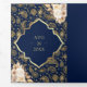 Invitation Trois Volets Blue Gold Paisley Floral QR Code Mariage indien