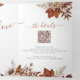 Moderne rustique élégante aquarelle automne fleurs botaniques automne, citrouille, feuillage et feuilles séchés faisant un budget chic le tout dans un faire-part de mariage triplé avec un script de calligraphie à la mode écriture manuscrite et la palette terreuse couleur beige terre cuite. Facile à personnaliser avec votre code QR de numérisation automatiquement généré sur le site Web pour RSVP en ligne et les détails et avec votre photo personnalisée.