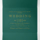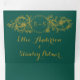 Vintage cadre fleuri or avec initiales sur faire-part de mariage triplé vert à feuillage persistant. Les éléments de cette invitation de mariage sont la belle vintage cadre en or fait de feuilles acanthus et des fleurs avec vos initiales et les polices sur arrière - plan vert.