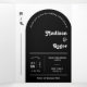 Invitation Trois Volets Code QR de mariage rétro noir écriture boho arche