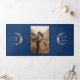 Cette faire-part de mariage triplée bleu marine mêle vos photos précieuses avec un thème céleste romantique, ce qui en fait un lieu idéal pour les célébrations sous "Under the Stars", "To the Moon and Back" ou "Written in the Stars". Le design combine habilement votre invitation, les détails du mariage - informations et RSVP dans un seul et élégant package. Vous avez également la possibilité d'incorporer un code QR en remplaçant l'URL fournie par l'URL désirée. Orné de superbes représentations d'une lune d'or croissant, d'un halo solaire radieux, de diverses planètes, constellations et galaxies, il encapsule la beauté évocatrice des cieux nocturnes. Choisissez d'afficher une seule image sur les deux côtés ou de choisir deux photos distinctes pour une plus grande diversité.