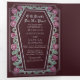 Faites une déclaration audacieuse d'amour éternel. Cette faire-part de mariage gothique présente "Till Death Do Us Part" dans un cadre en forme de cercueil, orné d'épines, de roses et d'accents d'argent contre un arrière - plan rouge avec votre propre code QR. Parfait pour une fête romantique ! Personnalisez le texte, la police et la couleur arrière - plan en fonction de vos préférences de conception. Objets correspondants dans notre boutique pour un thème de fête complet. Veuillez noter que l'argent sur l'invitation n'est PAS du papier peint réel et est imprimé en couleurs plates