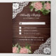 Éblouissez vos invités avec cette invitation de mariage rustique tout en un avec belle dentelle blanche et roses roses roses avec bocal de mason sur un arrière - plan en bois de grange vintage avec carte RSVP détachable. Ajoutez simplement les détails de votre événement sur ce modèle facile à utiliser et ornez cette carte avec votre photo préférée pour en faire une invitation unique.