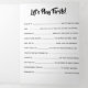 Un modèle noir et blanc sans photos, images ou thème juste des polices de caractères décoratives noires et trois jeux - bingo, bingo, bavardage de mots et jouons d'abord - pour que vos invités puissent compléter la journée. Personnalisez la couverture avec n'importe quel âge et libellé et utilisez l'icône de personnaliser pour ajouter vos propres images, photos ou photos.