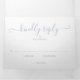 Le tout en un bleu poussiéreux tricoté faire-part de mariage avec une élégante typographie. L'invitation comprend les détails de votre invité de célébration et une carte RSVP détachable. Conçu par Thisisnotme©