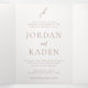 Elégante invitation de mariage triplé avec un design classique avec votre monogramme dans une police de script avec vos noms et détails dans une police de serif traditionnelle.