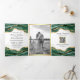 Invitation Trois Volets Emerald Green Gold Abstrait Enk QR Code Mariage
