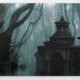 Invitation Trois Volets Fête d'Halloween de cimetière foncé et Éffrayant