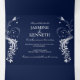 Invitation Trois Volets Fissures florales blanches ornées sur Mariage bleu