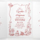 The "Drawn Together" Theme: The playful red illustrations—from the string of lights party vibes to the gourmet seafood plate—carry across all three panels, creating a visual story of your wedding day.