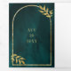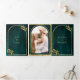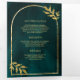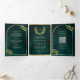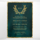Invitation Trois Volets Gold Laurel Wreath Feuilles Dark Turquoise Mariage