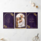 Invitation Trois Volets Gold Laurel Wreath Feuilles Royal Purple Mariage