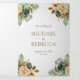 Invitation Trois Volets Green Cream Floral Gold QR Code Mariage photo