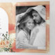 Corail pêche cactus aquarelle fleurs avec feuille fleurs en terre cuite à triple mariage de automne Invitation. Ce design élégant présente un cadre en arc et des fleurs de cactus d'aquarelle de pêche corallienne avec de succulents feuilles sur des éclaboussures d'aquarelle en terre cuite sur les coins supérieur gauche et inférieur droit et votre texte en terre cuite et noir sur le couvercle. Le premier et le dernier panneaux intérieurs ainsi que le volet extérieur comprennent des photos du couple tandis que le panneau central intérieur affiche les détails du mariage. Le dos extérieur présente des détails sur RSVP et plus encore.