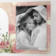 Eau rose rose poussiéreuse fleur de cactus et faire-part de mariage à trois plis feuille arc fleuri boho. Ce design élégant présente un cadre en arc et des fleurs de cactus couleur rose rose poussiéreux avec succulent sur les coins supérieur gauche et inférieur droit et votre texte en rose et noir poussiéreux sur le couvercle. Le premier et le dernier panneaux intérieurs ainsi que le volet extérieur comprennent des photos du couple tandis que le panneau central intérieur affiche les détails du mariage. Le dos extérieur présente des détails sur RSVP et plus encore.
