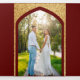 Invitation Trois Volets Mariage indien de style Bollywood rouge et or