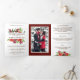 Invitation Trois Volets Mariage photo rustique Feuille rouge et vert