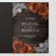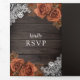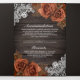 Éblouissez vos invités avec cette élégante invitation de mariage tout en un avec de beaux roses oranges rustiques et dentelle avec carte postale RSVP détachable. Ajoutez simplement les détails de votre événement sur ce modèle facile à utiliser et ornez cette carte avec votre photo préférée pour en faire une invitation unique.