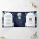 Invitation Trois Volets Marine Blue Peony Mason Jar QR Code Mariage