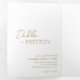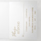 Faire-part de mariage triplée en faux or moderne avec un design simple et minimal avec le nom de la mariée dans un script élégant et le nom du marié dans une police sans serif contemporaine. Vous trouverez ci-dessous, dans le coin inférieur droit, les détails de votre événement dans un agencement minimaliste. Le panneau central a votre photo préférée, le panneau droit est votre carte RSVP et le dos a vos détails supplémentaires.