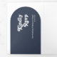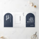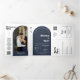 Invitation Trois Volets Navy Retro Script Boho Arch Photo QR Code Mariage