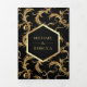 Invitez vos invités avec cette élégante invitation de mariage tout-en-un présentant un motif de tourbillonnement vintage avec des bordures de faux feuille d'or. Ajoutez simplement les détails de votre événement sur ce modèle facile à utiliser et ornez cette carte avec votre photo préférée pour en faire une invitation unique.