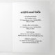Invitations de mariage triplées de style moderne avec une disposition simple et minimale avec vos noms dans une police rétro super. Vous trouverez ci-dessous les détails de votre événement dans une police sans serif avec votre code QR (facultatif) pour que les invités puissent scanner et facilement RSVP en ligne. Le panneau de gauche a votre programme d'événements, le panneau de droite a vos détails supplémentaires et le fond a votre photo préférée. La palette de couleurs de l'invitation et de la couverture extérieure est noire avec lettrage blanc et les autres panneaux à l'intérieur sont noirs et blancs. Le code QR peut être supprimé et les polices / couleurs peuvent être modifiées dans l'outil d'édition de conception.
