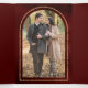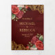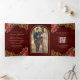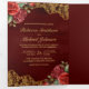 Invitation Trois Volets Red Roses Gold Lace Maroon QR Code Mariage photo