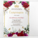 Épatez vos invités avec cette invitation de quinceañera élégante et tendance à trois volets, mettant en vedette des roses en aquarelle rouge, fuchsia et blanche luxueuses, peintes avec des détails exquis et embellies d'une couronne de paillettes en faux or, d'une calligraphie en paillettes en faux or et de papillons en feuille d'or faux. Vous disposez d'un espace généreux pour partager 3 photos de la jolie fille d'anniversaire et toutes les informations pour son jour spécial, y compris l'heure et le lieu de la messe, l'heure et le lieu de la réception, le nom de sa cour (parrains, chambellans et demoiselles d'honneur) et des informations sur ses parrains. Modifiez facilement le texte à l'aide des cases de modèle. Si vous devez modifier les polices ou les couleurs ou repositionner des éléments, faites défiler la page au-delà des cases de modèle et cliquez sur "Modifier à l'aide de l'outil de conception". Conçu dans le cadre de ma collection de célébration de quinceañera "Dramatic Rose Red". N'oubliez pas de parcourir les autres articles de cette collection pour créer une appar