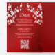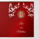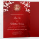 Ce faire-part de mariage chinois traditionnel bilingue présente de jolies fleurs de cerisiers roses et un symbole de bonheur à double or rond sur un arrière - plan chatoyant rouge rubis. Noms de mariée et de mariée dans un élégant script classique. Invitation à la cérémonie chinoise de faire-part de mariage ou de thé. Avec votre photo au centre de la faire-part de mariage tri-pliée et un texte chinois traditionnel à l'intérieur droit. À l'arrière se trouvent les détails et un code qr scannable pour votre site mariage.