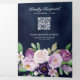 Invitation Trois Volets Russe violet Floral QR Code Marine Mariage bleu