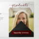 Un script élégant annonce votre diplômé sur votre photo préférée de fin d'études au recto. Bloc pour leur nom au recto, et tous les détails de la cérémonie à l'intérieur avec deux autres photos. Espace au verso pour un message de remerciement aux amis et à la famille. Conception disponible dans les couleurs de l'école rouge, orange, violet, vert, bleu, orange brûlé, bordeaux et noir. Produits assortis disponibles.