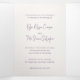 Elégante invitation de mariage triplée avec un design simple et classique avec vos noms dans un script moderne et vos détails de l'événement dans une combinaison de serif traditionnel et de polices italiques.
