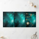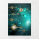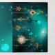 Or, clés antiques avec engrenages et cadrans accrochés sur chaînes dorées sur arrière - plan vert lumineux.
