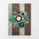 Invitation Trois Volets Steampunk Clock and Turquoise Roses on Striped