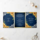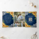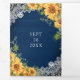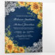 Invitation Trois Volets Tournesols rustiques Marine Bleu Bois QR Code Mari