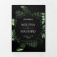 Invitation Trois Volets Tropical Gold Monstera Palm Black QR Code Mariage
