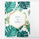 Invitation Trois Volets Turquoise blanc Palm Monstera Feuille Mariage