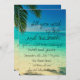 Le faire-part de mariage tropical entièrement personnalisable de plage comportant le message "tout que vous avez besoin est amour et la plage."